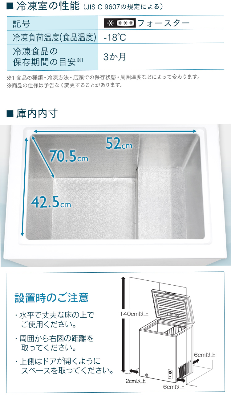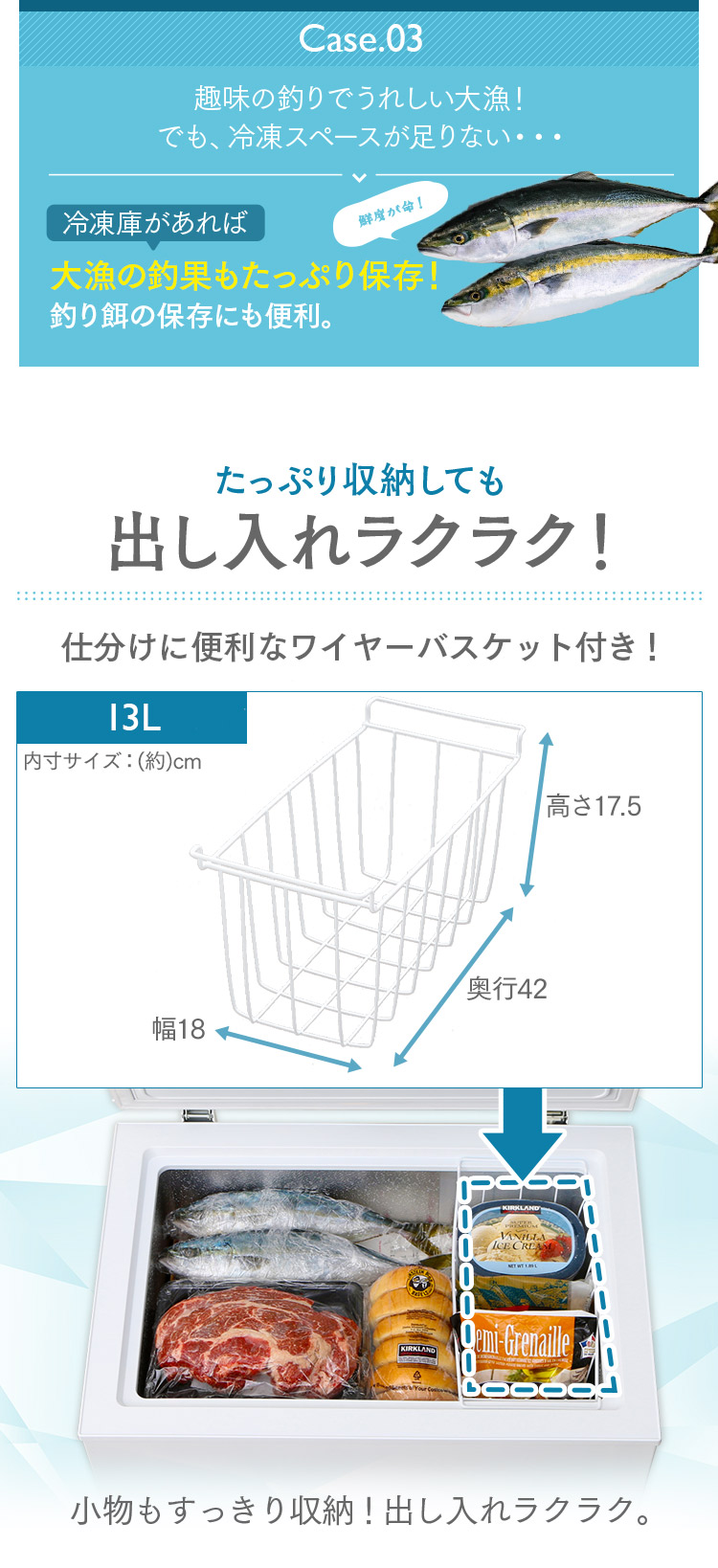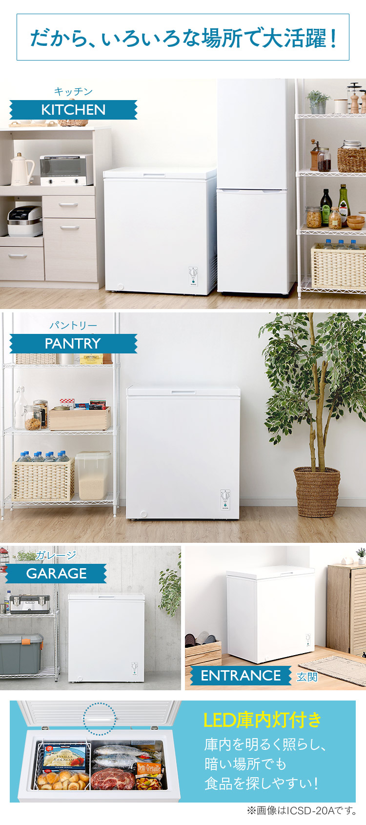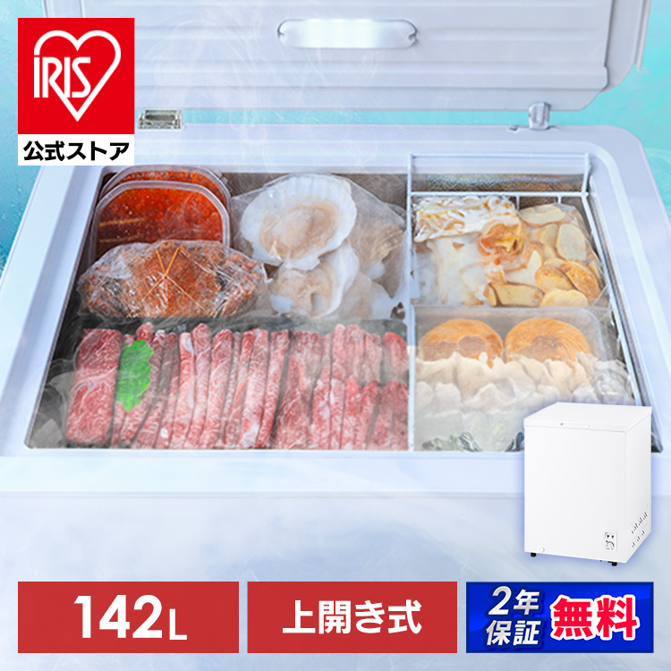 (検索用:冷凍庫 上開き 142L セカンド冷凍庫 家庭用 コンパクト 取り出しやすい 冷凍食品 まとめ買い ストック バスケット付 冷凍 ストッカー フリーザー チェストフリーザー 上開き冷凍庫 アイリスオーヤマ 4967576773522)
