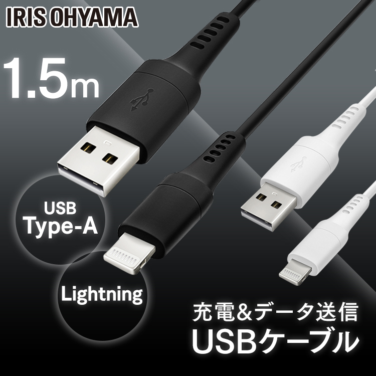 (検索用:Lightningケーブル・通信ケーブル・充電・データ通信ケーブル・けーぶる・USB・Type-A・Lightning・AC充電器・2重シールド・ライトニング・らいとにんぐ・4967576495868・4967576495875・アイリスオーヤマ)