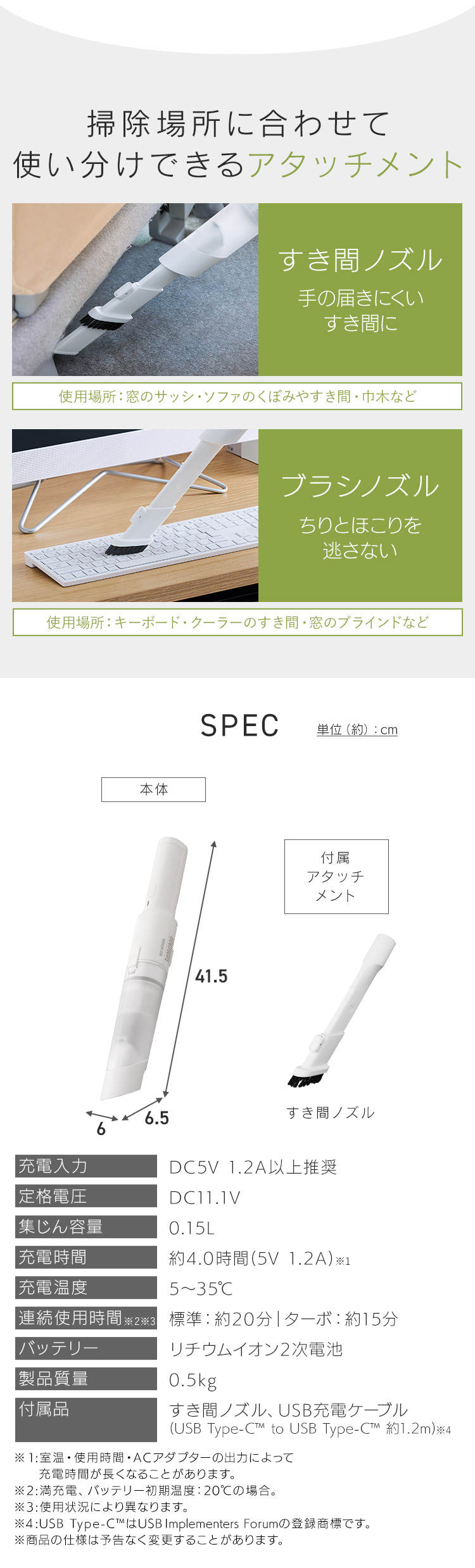 単品:充電アダプター、すき間ノズル