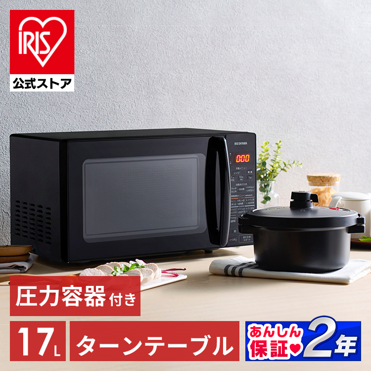 電子レンジ 専用圧力容器付 17L アイリスオーヤマ 単機能レンジ 一人暮らし 圧力鍋 自動メニュー 時短料理 IMGY-T172-B 安心延長保証対象