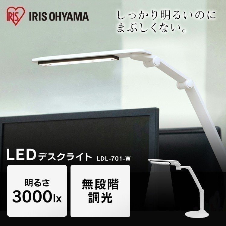 デスクライト おしゃれ led アイリスオーヤマ ライト 照明 卓上ライト デスク シンプル 読書 701ベースタイプ ホワイト LDL-701-W 安心延長保証対象