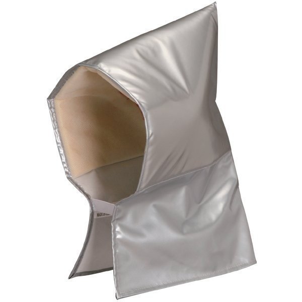 災害時の危険から頭部を守る防災頭巾です。難燃生地が火の粉を防ぎます。フリーサイズで、かぶるだけであごひものゴムが伸縮し、頭部にフィットします。