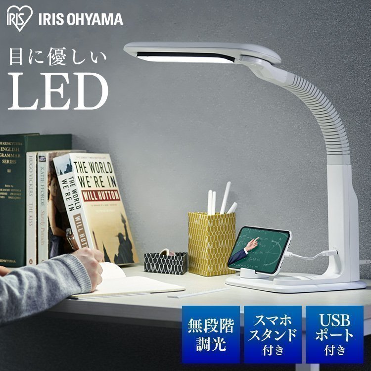 便利なスタンド&USBポート付きのLEDデスクライトです。