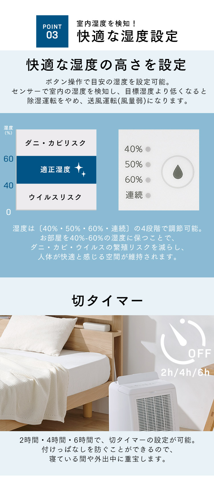 止め忘れの心配がない「切タイマー(2/4/6時間)」付きです。