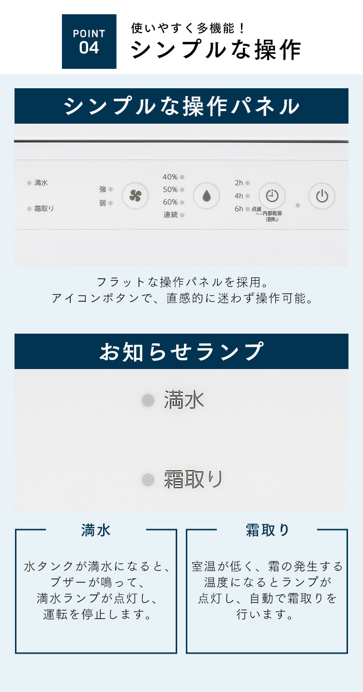 シンプルな操作パネルで使いやすい衣類乾燥除湿機です。