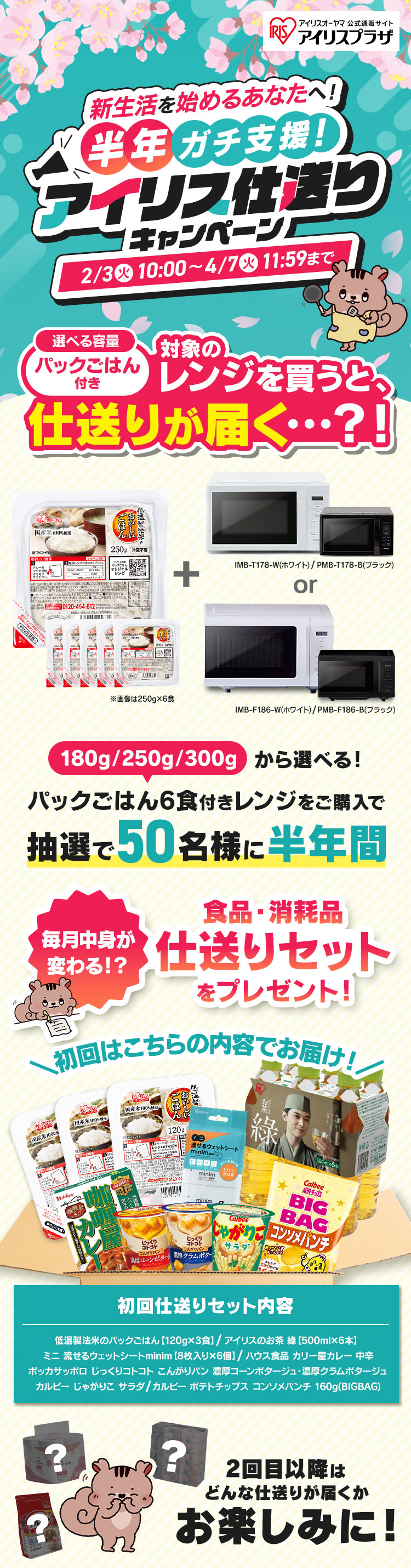 賞品(当選:50名様)アイリスプラザからの月替わり仕送り×6回