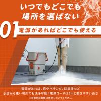 庭やベランダ、車など近くに電源があれば水源が無くても洗浄可能!