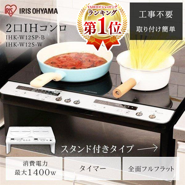 IHクッキングヒーター 卓上 2口 IH アイリスオーヤマ IHコンロ 2口コンロ 工事不要 IHK-W12SP-B W12S-W 安心延長保証対象