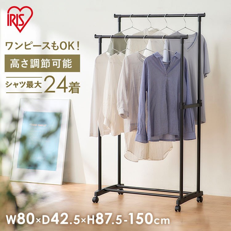 ハンガーラック スタイルハンガー おしゃれ パイプハンガー ダブルタイプ コート掛け クローゼット キャスター付き シンプル アイリスオーヤマ PE-E280R