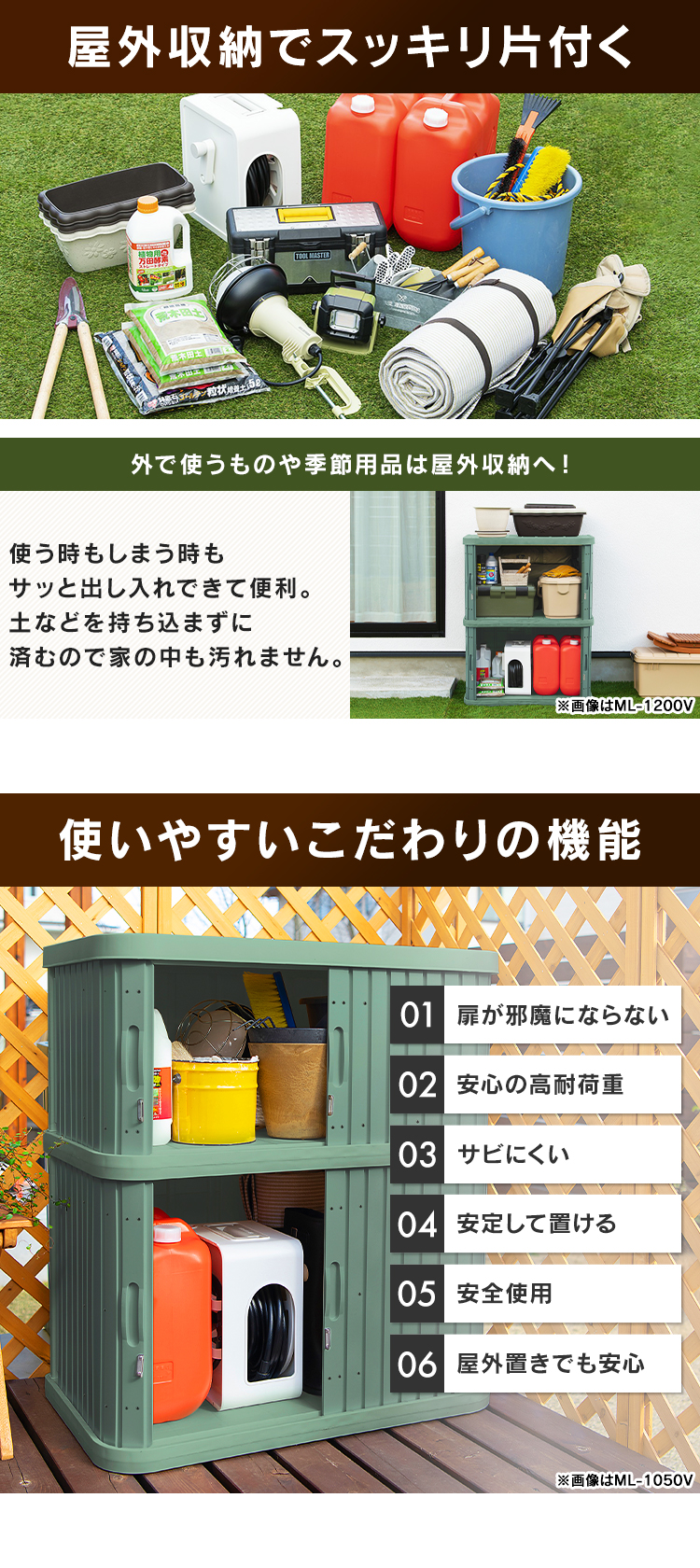 ポリタンクやビールコンテナ、季節物の家電、ガーデニング用品等の収納に最適です。