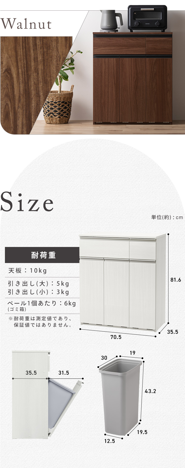 (検索用:キッチンカウンター・ゴミ箱・おしゃれ・幅70.5・奥行35.5・高さ81.6・キッチンラック・ゴミ箱付き・キッチンボード・キッチン収納・カウンター・ダストボックス・3分別・キッチン棚・新生活・ペールカウンター・PKT-8670R・アイリスオーヤマ・4967576818018・4967576818032・4967576818049・アイリスオーヤマ)