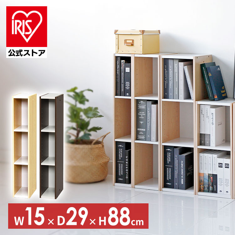 (検索用:新生活・必要なもの・プレゼント・いるもの・スペース・ユニット・ラック・カラーボックス・すき間・隙間・隙間収納・すきまラック・収納・本棚・スリム・幅15cm・木製・キッチン・リビング・洗面所・ランドリー・サニタリー・アイリスオーヤマ)