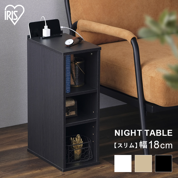 (検索用:ナイトテーブル・サイドテーブル・ベッドサイド・テーブル・デスク・棚・シェルフ・収納・コンセント付き・スマホスタンド付き・4967576638395・アイリスオーヤマ)