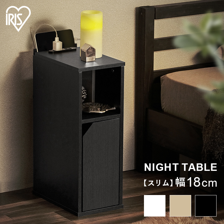 サイドテーブル ナイトテーブル 北欧 コンセント スリム ソファ おしゃれ 木製 コンパクト スマホスタンド NTB-180T テーブル デスク アイリスオーヤマ