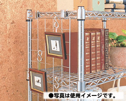メタルラック専用のメッシュパネルです。棚板に掛けて使用します。奥行46cmの棚板に取り付けできます。フックと組み合わせて、小物などを下げて使うのに便利です。取り付けには別売の「メタルラックコネクター MR-2R」が必要です。ポール直径25mm用。