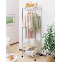 標準的なハンガーにぴったりの奥行45cmのハンガーラックです。下段に棚板が付いているので、バッグ等の小物収納に便利です。移動に便利なキャスター付き!ポール直径19mm。