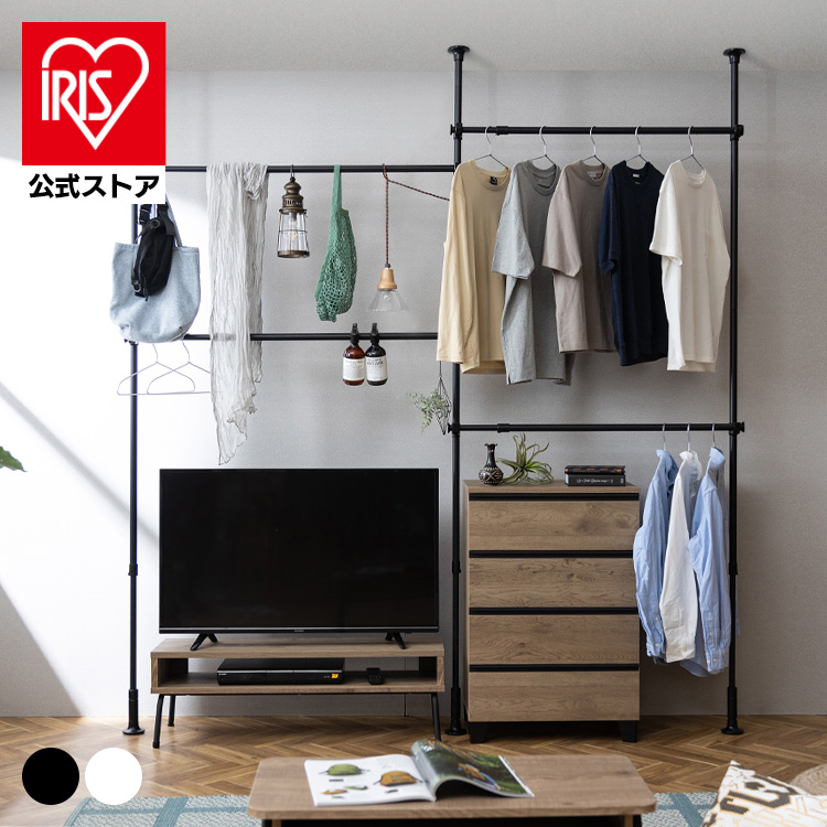(検索用:ワードローブ・突っ張り棒・棚・突っ張りラック・ハンガーラック・ハンガースタンド・物干し・伸縮・調整可能・衣類収納・洋服収納・4967576557931・アイリスオーヤマ)