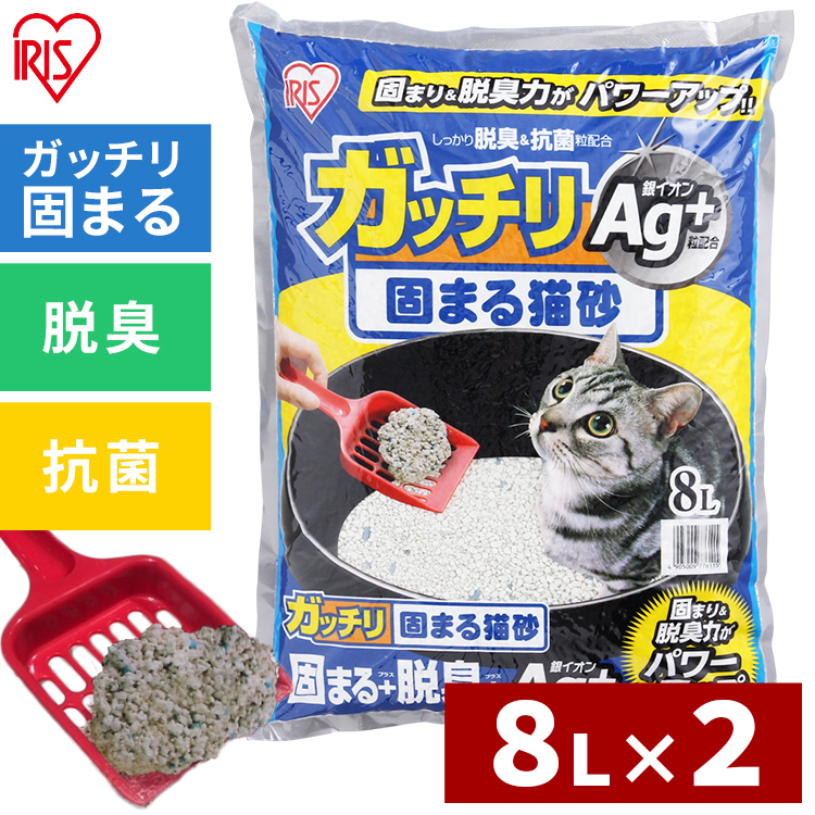 猫砂 鉱物系 アイリスオーヤマ まとめ買い ベントナイト 抗菌 銀イオン 脱臭 固まる猫砂 8L 2袋セット GN-8
