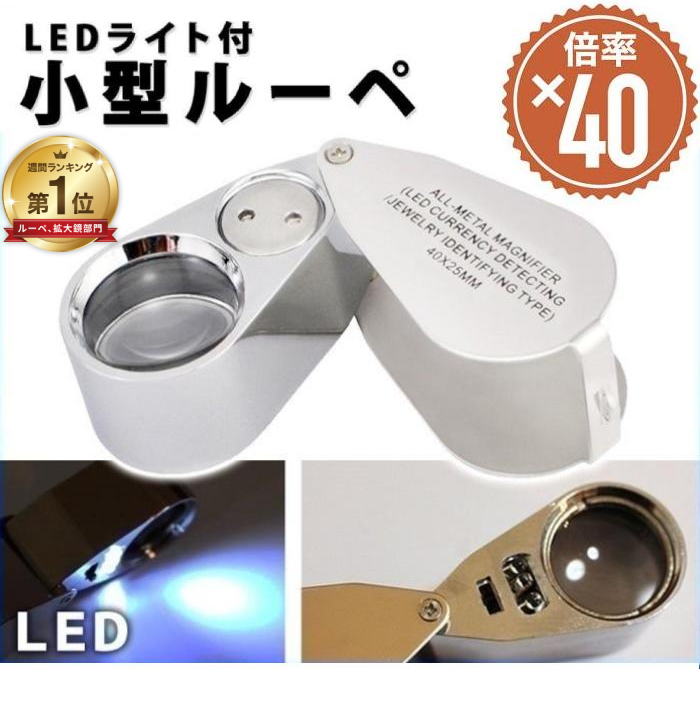 ルーペ ライト付き ledライト付き ジュエリールーペ 40倍 スライドケース入り コンパクト 小型 拡大鏡 携帯 ミニルーペ 宝石 鑑定