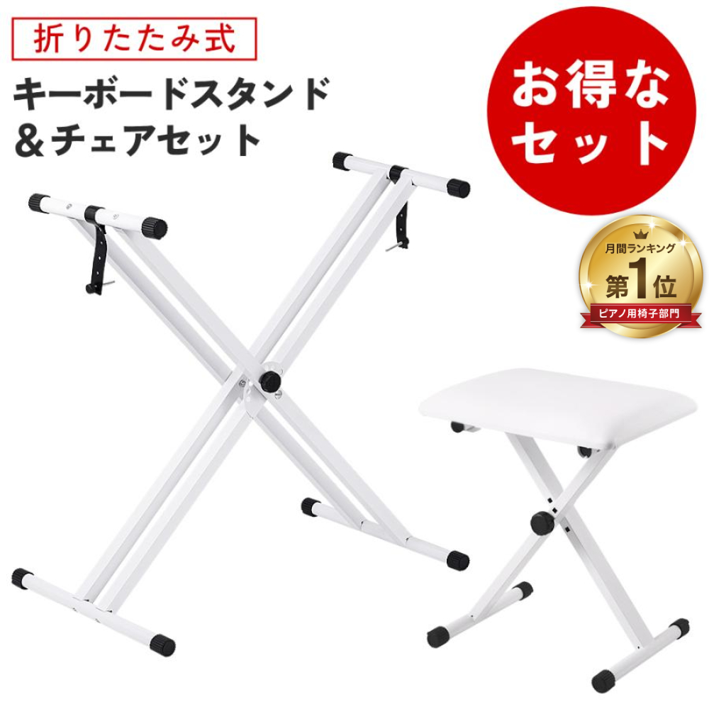 キーボードチェア キーボードスタンド ピアノ椅子 折りたたみ 高さ調節 キーボード机 キーボードイス チェア ピアノ用椅子 キーボード用 電子ピアノ 白 初心者