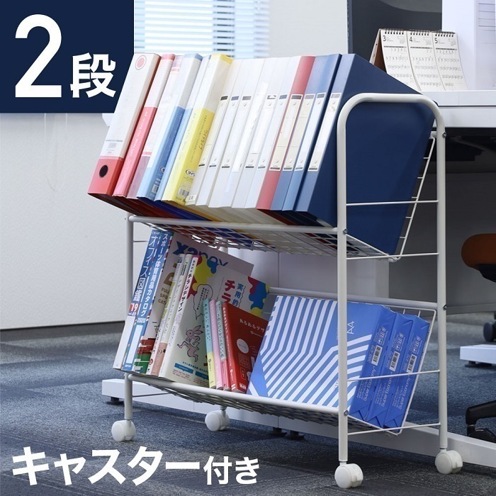 ファイルワゴン キャスター付き ファイルラック 2段 オフィスワゴン 斜め スリム サイドワゴン デスクワゴン ファイル収納 A4 ファイル 収納 ワゴン 書類 整理