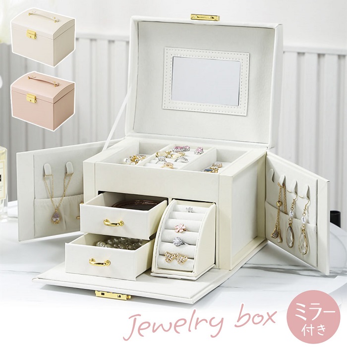 ジュエリーボックス アクセサリーケース 大容量 持ち運び 鏡付き アクセサリー収納 おしゃれ 可愛い ネックレス 指輪 ピアス 小物入れ アクセサリーボックス