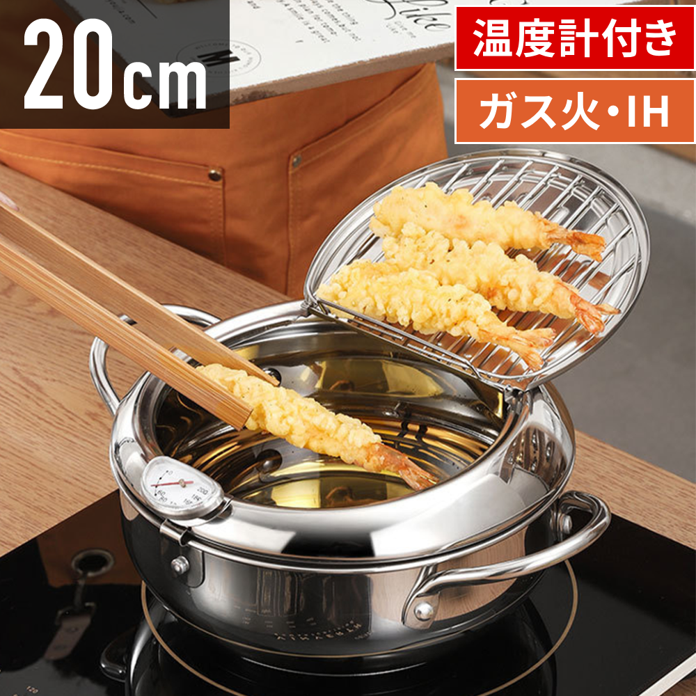 関連ワード てんぷらなべ 天麩羅 天ぷら鍋 温度計付き 20cm IH対応 揚げ鍋 両手鍋 IH対応 揚げ鍋 揚げ物 調理器具 ガス火対応 揚げ物鍋 天ぷら用鍋 フライヤー なべ お鍋 アミ付き 蓋付き 温度計
