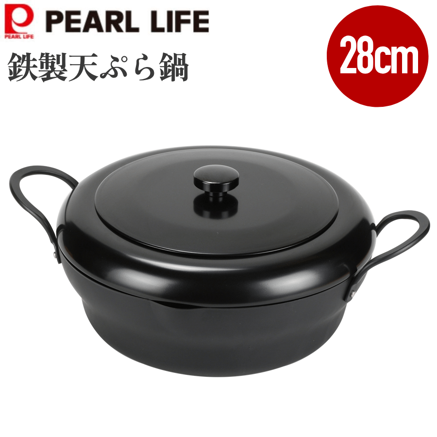 天ぷら鍋 揚げ物鍋 28cm 鉄製 ガス火 IH対応 ガス IH フタ付き 蓋付き 段付天ぷら鍋 パール金属 揚げクック HB-5260 HB5260 鉄鍋 ビッグサイズ 両手鍋 家庭用