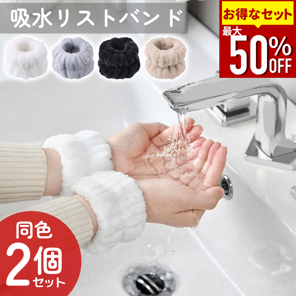 吸水 リストバンド セット 2個セット 洗顔 シュシュ 袖濡れ防止 服濡れ防止 吸水 吸水タオル 髪 お風呂上がり メイク 大人 子供 厚手 洗い替え 吸水リストバンド