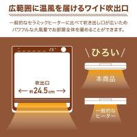 広範囲に届けるワイド吹出口一般的なセラミックヒーターに比べて、吹き出し口が広いため、
