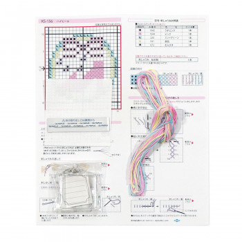 | 素材・材質 | NO.3900布(アイーダ)(6)(白):綿100% 25番刺しゅう糸:綿100% クロス針26号:鋼 キー・リング:金属、プラスチック キー・リング台紙:紙 |