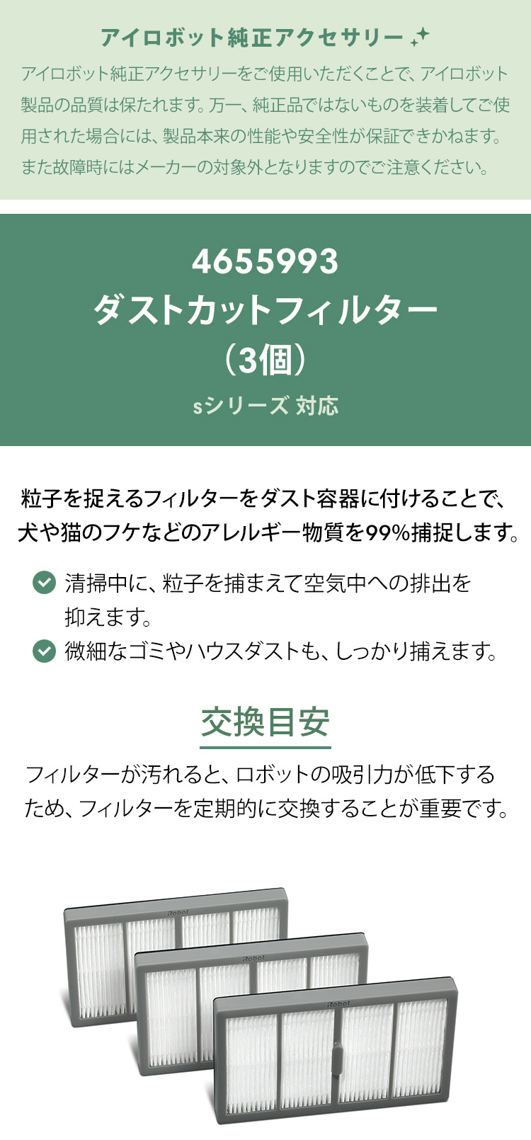 (P10) アイロボット 公式 ダスト カットフィルター 3個 セット 4655993 ルンバ s9+ 専用 交換備品 ロボット掃除機 iRobot 純正 正規品