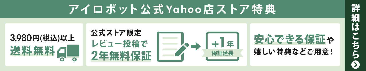 アイロボット認定販売店またはアイロボット公式ストアで直接購入された製品以外の製品は、当社が定めるメーカー保証の対象外となります。