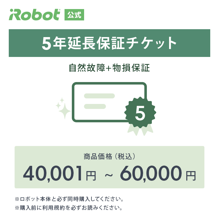 ■ 延長保証チケットはロボット掃除機と同時購入でのみご購入いただけます。