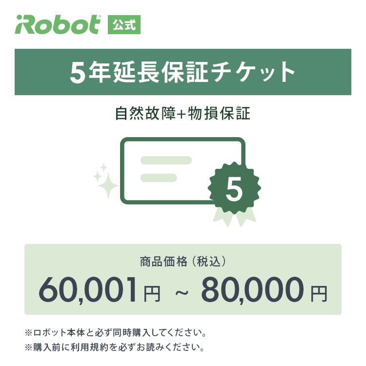 ■ セット商品、アクセサリー類は延長保証対象外になります。■ リユース品は、メーカー保証や延長保証の対象外となります。■ 延長保証チケットはロボット掃除機と同時購入でのみご購入いただけます。チケット単品でのご購入はお断りする場合がございますので予めご了承ください。■ ご購入後、延長保証チケットのみのキャンセルはお受付できません