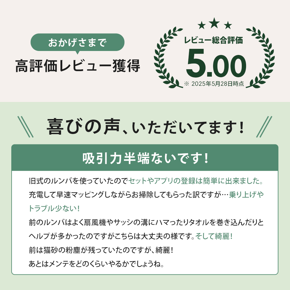 ※1: 国内累計出荷台数トップのRoomba 600シリーズとの比較。(2025年2月時点)