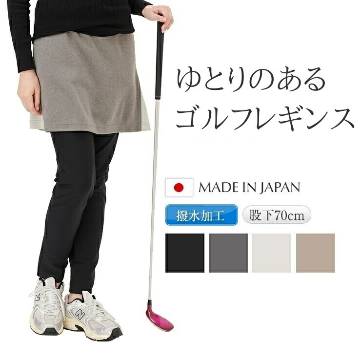 ゆとりのある ゴルフ レギンス レディース 日本製 女性 ゴルフインナー ゆったり ゴルフパンツ スポーツレギンス オシャレ はっ水 軽量 スパッツ ストレッチ ロング ヨガ 美脚 3Lサイズ 大きいサイズ もあり 股下70 急な雨でも安心のはっ水加工生地 脚の形をひろわないゆったりゴルフレギンス 好感度アップの美人レギンス 確かな品質で毎年はける日本製レギンス ブラック 黒 チャコール アイスグレー モカ ベージュ