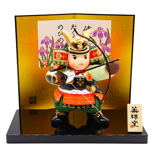 五月人形 コンパクト 陶器 薬師窯 錦彩 若武者 弓矢 卓上 小さい 日本製 陶製 おしゃれ かわいい 端午の節句 初節句