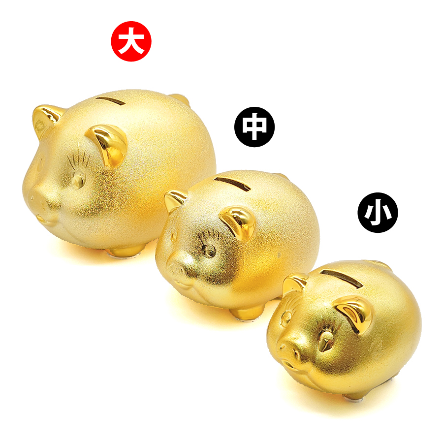 全身金色のゴージャスなブタの貯金箱。お部屋に置いておくだけでもリッチな気分になりそうです。よく見ると可愛らしいお顔をしています。