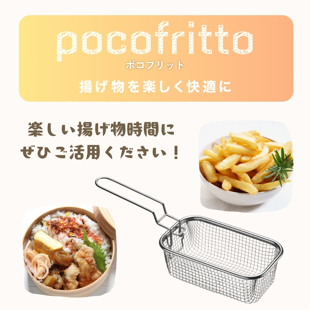 揚げ物の調理をより快適にする!をテーマに作られた【ポコフリット】のシリーズの中でも大人気の「角型揚げざる RG-0561」のご紹介です。