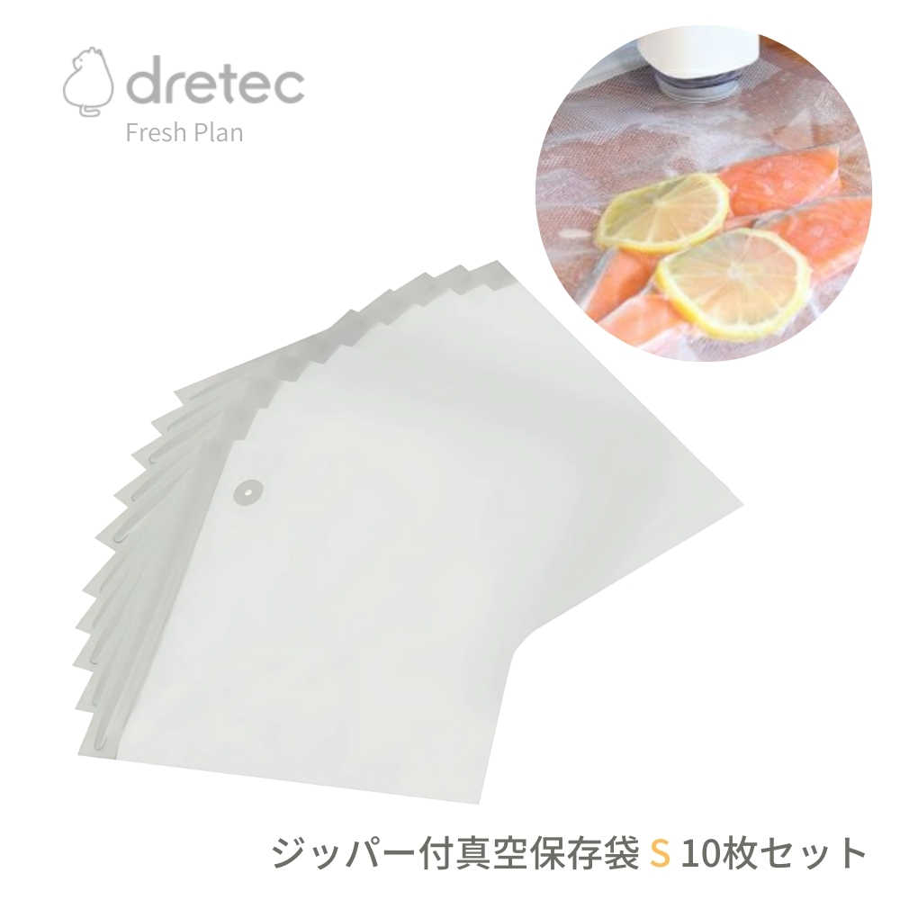 ドリテック Fresh Plan ジッパー付真空保存袋 S 10枚セット ZVS200XXBG3 メール便対応 冷凍 冷蔵 保存パック 専用ジッパー付 食品保存袋