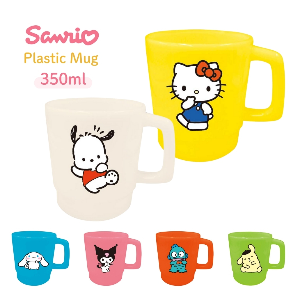 サンリオ プラスチックマグ 350ml マグカップ コップ 歯磨き うがい 割れにくい 子供 大人 取っ手付き キティ ポチャッコ ポムポムプリン ハンギョドン クロミ