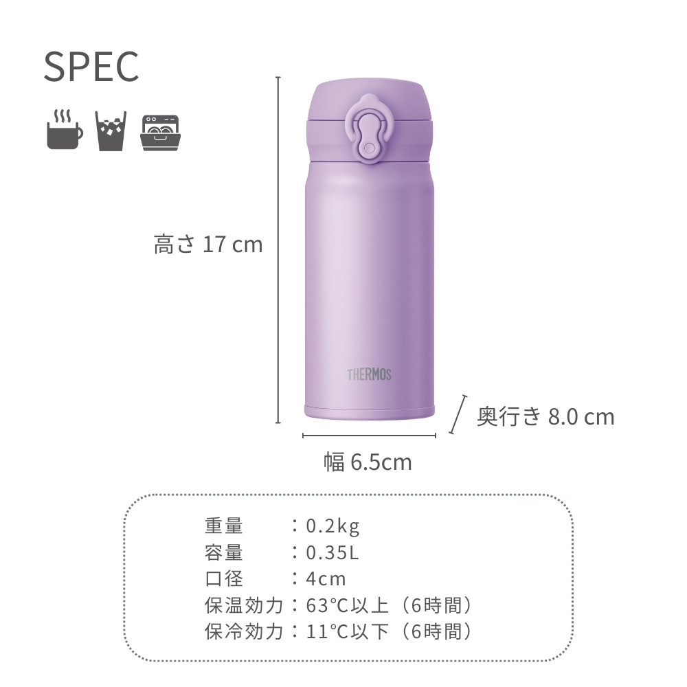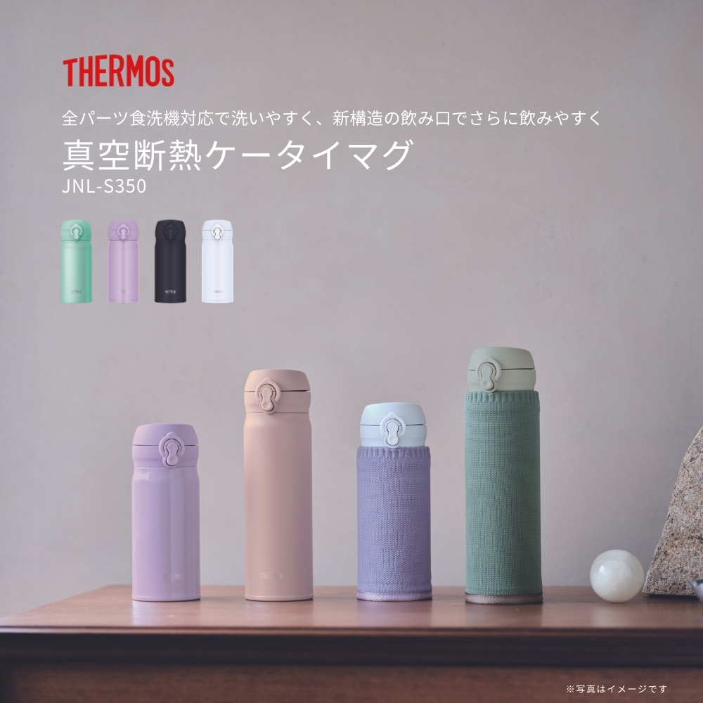 | 商品名: サーモス 真空断熱ケータイマグ 水筒 350ml JNL-S350 保冷 保温 食洗機対応 スポーツ対応 ワンタッチ 洗いやすい 軽量 コンパクト 大人 子供 直飲み ステンレス 熱中症対策 飲み口 キッズ -商品説明- ベストセラーのケータイマグが全パーツ食洗機で洗えるようになりました。 新構造の飲み口でさらに飲みやすく! 『サーモス 真空断熱ケータイマグ(JNL-S シリーズ)』 『真空断熱ケータイマグ(JNL シリーズ) 』がリニューアルして登場! 性別や年齢を問わず使いやすく、さらに洗いやすく、飲みやすい仕様になりました。 従来品の使い勝手の良さやデザインなどは踏襲し、飲み口の着脱のしやすさや口当たりの良さなどをさらにパワーアップ。 さらに、食器洗浄機使用可能でお手入れもラクに。 シリーズ過去最多のカラーラインアップ お子さまに好まれるパステルカラーから、近年人気の高いくすみカラーを取り入れるなどライフスタイルやお好みにあわせてお選びいただけるカラーラインアップをご用意しました。 ・新構造でお手入れラクラク! スライド&プッシュでカンタン着脱! ・全パーツ食洗機対応 ・唇にフィットする飲み口形状 飲み口がより丸く、唇にフィットします。 ・フタが大きく開いて飲みやすい ・ステンレス製魔法びん構造だから高い保温・保冷力 ・同容量帯で最高クラスの軽さとコンパクト感! ・スポーツ飲料 OK ※温めたスポーツ飲料は入れないでください -特徴・品質- ・高品質なステンレス製魔法びん構造で、長時間の保温・保冷が可能。 ・新構造の飲み口は、唇にフィットしやすく快適な使用感を提供。 ・全パーツが食洗機対応で、お手入れが簡単。 -仕様- ・カラー:ブラックジェイドBK-J、スノーホワイトSN-WH、ピンクパープルPKP、アイスグリーンIG ・実容量:0.35 L ・保温効力(6 時間):63℃以上 ・保冷効力(6 時間):11℃以下 ・口径:約 4.0 cm ・本体寸法:約 幅 6.5 cm ×奥行 8.0 cm ×高さ 17.0 cm ・本体重量:約 0.2 kg -機能- ・ワンタッチで開閉できる飲み口が、素早く水分補給を可能にします。 ・軽量でコンパクトなデザインは持ち運びが容易で、日常生活やアウトドア活動に最適です。 ・ステンレス製魔法びん構造が、飲み物の温度を長時間維持します。 ・スポーツ飲料も対応(ただし、温めた飲料は入れないでください)。 -使用・手入れについて- 使用後はすぐに洗浄し、すべてのパーツを食洗機で洗うことができます。飲み口の着脱も簡単で、常に清潔に保てます。 スポーツ飲料を使用する場合、温めた飲料は入れないようにしてください。 -注意事項- ・商品の色はできる限り実物に近づけていますが、ディスプレイ設定や撮影条件により色味が異なる場合があります。ご了承ください。 ・ご注文のタイミングや内容により、購入後のキャンセルや修正が制限される場合があります。 ・同時に複数のご注文があった場合、システム上の遅延により在庫がないにも関わらず購入できてしまう場合があります。そのような場合は速やかにメールでお知らせいたします。 |