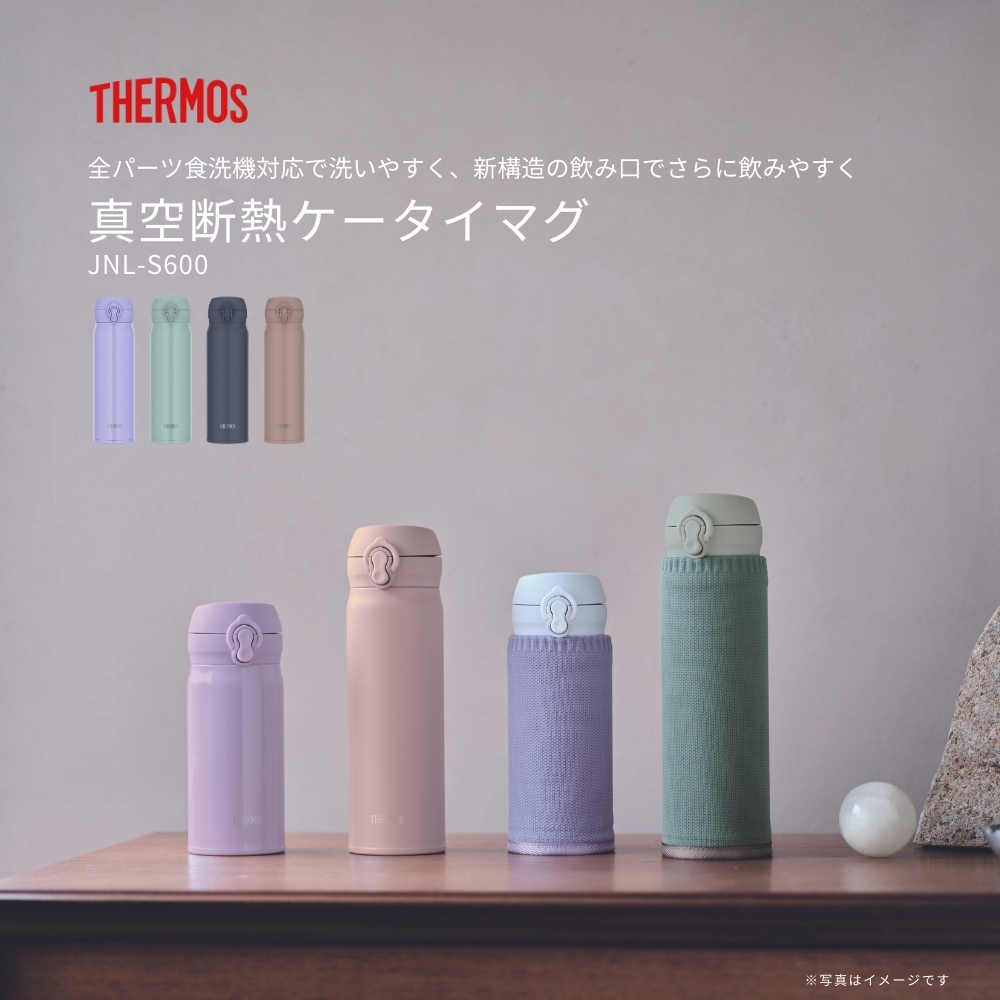 | 商品名: サーモス 真空断熱ケータイマグ 水筒 600ml JNL-S600 保冷 保温 食洗機対応 スポーツ対応 ワンタッチ 洗いやすい 軽量 大人 子供 直飲み ステンレス 熱中症対策 飲み口 キッズ -商品説明- ベストセラーのケータイマグが全パーツ食洗機で洗えるようになりました。 新構造の飲み口でさらに飲みやすく! 『サーモス 真空断熱ケータイマグ(JNL-S シリーズ)』 『真空断熱ケータイマグ(JNL シリーズ) 』がリニューアルして登場! 性別や年齢を問わず使いやすく、さらに洗いやすく、飲みやすい仕様になりました。 従来品の使い勝手の良さやデザインなどは踏襲し、飲み口の着脱のしやすさや口当たりの良さなどをさらにパワーアップ。 シリーズ過去最多のカラーラインアップ お子さまに好まれるパステルカラーから、近年人気の高いくすみカラーを取り入れるなどライフスタイルやお好みにあわせてお選びいただけるカラーラインアップをご用意しました。 ・新構造でお手入れラクラク! スライド&プッシュでカンタン着脱! ・全パーツ食洗機対応 ・唇にフィットする飲み口形状 飲み口がより丸く、唇にフィットします。 ・フタが大きく開いて飲みやすい ・ステンレス製魔法びん構造だから高い保温・保冷力 ・同容量帯で最高クラスの軽さとコンパクト感! ・スポーツ飲料 OK ※温めたスポーツ飲料は入れないでください -特徴・品質- ・高品質なステンレス製魔法びん構造で、保温・保冷効果が抜群。 ・新しい飲み口デザインが、唇にフィットし、快適な使用感を提供。 ・全パーツが食洗機対応で、お手入れが簡単。 -仕様- ・カラー:ミネラルグレーMLGY、グレーベージュGYBE、ミントグリーンMG、スモークパープルSMPL ・実容量:0.6 L ・保温効力(6 時間):70℃以上 ・保冷効力(6 時間):10℃以下 ・口径:約 4.0 cm ・本体寸法:約 幅 7.0 cm ×奥行 8.0 cm ×高さ 23.5 cm ・本体重量:約 0.2 kg -機能- ・ワンタッチで素早く開閉できる飲み口が、忙しい日常でもスムーズな水分補給をサポート。 ・軽量で持ち運びが楽なコンパクト設計。 ・スポーツ飲料対応(ただし、温めた飲料は避けてください)。 -使用・手入れについて- 使用後はすぐに洗浄し、すべてのパーツを食洗機で簡単に洗うことができます。新構造の飲み口は着脱が簡単で、常に清潔に保てます。 スポーツ飲料を使用する際は、温めた飲料を避けてご使用ください。 -注意事項- ・商品の色はできる限り実物に近づけていますが、ディスプレイ設定や撮影条件により色味が異なる場合があります。ご了承ください。 ・ご注文のタイミングや内容により、購入後のキャンセルや修正が制限される場合があります。 ・同時に複数のご注文があった場合、システム上の遅延により在庫がないにも関わらず購入できてしまう場合があります。そのような場合は速やかにメールでお知らせいたします。 |