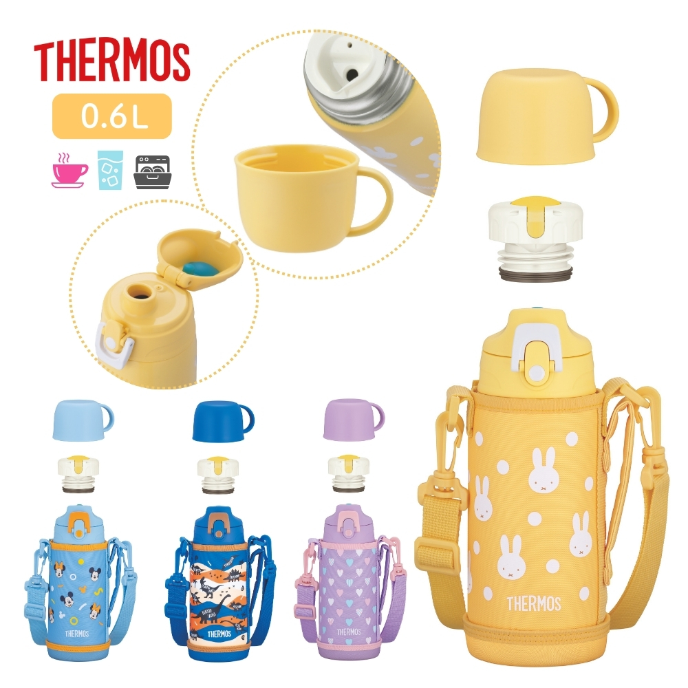 | 商品名: サーモス 真空断熱2ウェイボトル 水筒 0.6L FJJ-602 保冷 ワンタッチ コップ飲み 直飲み ポーチ付き 食洗機対応 子供 キッズ 小学校 幼稚園 保育園 -商品説明- 真空断熱2ウェイボトル/FJJ-602 シーンに合わせて多彩な使い方ができます。 人気のミッキー&ミニーのついた、直接飲めるスポーツボトル(保冷専用)、コップ付きボトル(保温・保冷対応)の2通りで使える2ウェイボトル。 食洗機OK ボトル本体も洗えます。 飲みやすい飲み口 飲みものの流れを良くする空気穴を設けたので、飲み口をくわえても一気に飲める。 ワンタッチ・オープン ワンタッチでオープンするキャップユニットはロックリング付き。 フルオープン中せん 中せんは、注ぎやすく、洗いやすい衛生的なフルオープン型。 お名前スペース付き 本体・ポーチにはお名前スペースがあります。 ※製品への書き込みは油性ペンをご使用ください。 ストラップ付きハンディポーチ 取り外しできるストラップ。洗濯機OK。コップを開けやすいすべり止め付き。 スポーツ飲料OK ※温めたスポーツ飲料は入れないでください。 -特徴・品質- ・直飲み&コップ飲みの2WAY仕様。 ・ワンタッチオープンで簡単に水分補給可能(ロックリング付き)。 ・真空断熱構造で長時間の保温・保冷が可能。 ・握りやすく飲みやすい空気穴付き飲み口。 ・フルオープン中せんで注ぎやすく、洗いやすい設計。 ・スポーツ飲料OK(※温めたスポーツ飲料は不可)。 ・本体&ポーチに名前を書けるスペース付き。 ・ストラップ付きポーチは取り外し可能で洗濯機で洗える。 -仕様- ・寸法:約幅8.0m×奥行9.5cm×高さ21.5 cm※1 約幅8.0m×奥行8.5cm×高さ21.5 cm※2 ・重量:約0.4kg ※1 ※2 ・実容量:0.6L ※1/0.63L ※2 ・保温効力(6時間) :72℃以上 ※1 ・保冷効力(6時間) :9℃以下 ※2 ・口径:約4.4cm ・中せんの種類:FJJ中せん ・カラー:パープルピンク、ブルーブラウン、イエローホワイト、ブルーオレンジ ※1 中せん使用時 ※2 キャップユニット使用時 ※保温効力とは、室温20℃±2℃において製品に熱湯を中せん下端まで満たし、湯温が95℃±1℃のときから中せんとコップを付けて縦置きにした状態で6時間放置した場合におけるその湯の温度です。 ※保冷効力とは、室温20℃±2℃において製品に4℃以下の水をキャップユニット下端まで満たし、水温が4℃±1℃のときからキャップユニットを付けて縦置きにした状態で6時間放置した場合におけるその水の温度です。 ※実容量とは、中せん下端、キャップユニット下端までの容量です。ご使用の際は、取扱説明書をご確認いただき適正な量を入れてください。 ※本体寸法(ポーチを含まず)は0.5cm単位、本体重量(ポーチを含む)は0.1kg単位で表示しています。 -機能- ・ワンタッチオープンで直飲み可能(保冷専用)。 ・コップ付きで温かい飲み物も飲める(保温・保冷対応)。 ・空気穴付き飲み口でスムーズな飲み心地。 ・全パーツ食洗機対応でお手入れ簡単。 ・名前スペース付きで園や学校での使用に最適。 ・ポーチは洗濯機で洗えて衛生的。 -使用・手入れについて- ・直飲みは保冷専用のため、温かい飲み物は入れないでください。 ・中せん使用時は保温・保冷どちらも可能。 ・スポーツ飲料はOKですが、温めたスポーツ飲料は入れないでください。 ・食洗機対応ですが、塩素系漂白剤の使用は避けてください。 ・ポーチはネットに入れて洗濯機で洗うことをおすすめします。 ・長期間使用しない場合は、しっかり乾燥させてから保管してください。 -注意事項- ・商品の色はできる限り実物に近づけていますが、ディスプレイ設定や撮影条件により色味が異なる場合があります。ご了承ください。 ・ご注文のタイミングや内容により、購入後のキャンセルや修正が制限される場合があります。 ・同時に複数のご注文があった場合、システム上の遅延により在庫がないにも関わらず購入できてしまう場合があります。そのような場合は速やかにメールでお知らせいたします。 |