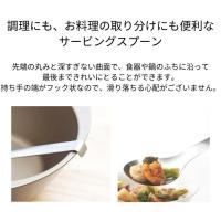 先端の丸みと深すぎない曲面で、食器や鍋のふちに沿って最後まできれいにとることができるサービングスプーンです。