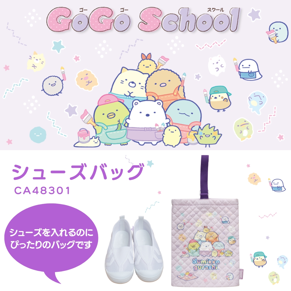 サンエックスの「すみっコぐらし ゴーゴースクール シューズケース」が登場。