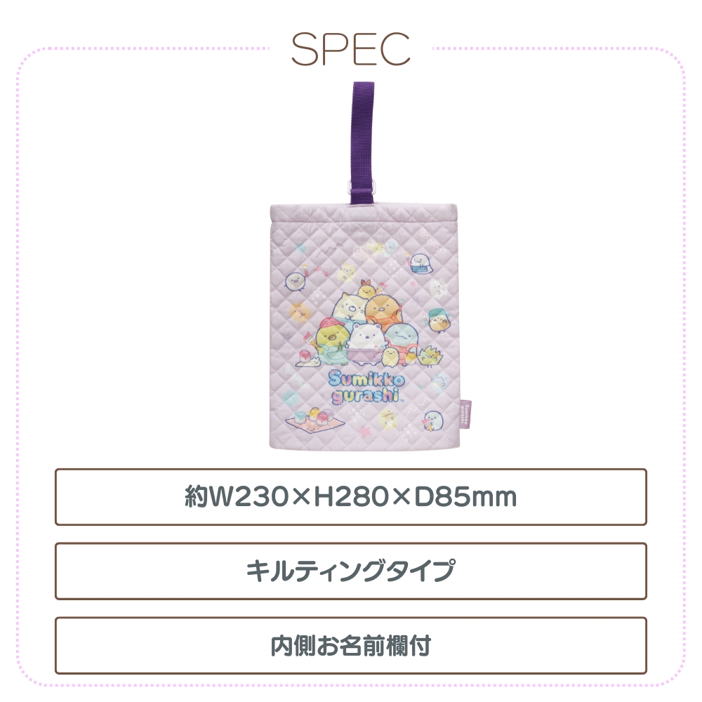 商品名: サンエックス すみっコぐらし ゴーゴースクール シューズケース 2024年新柄 キルティングタイプ 学習支援
