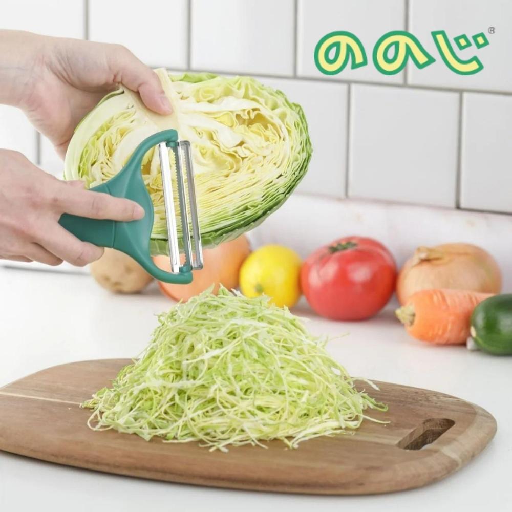 | ののじ キャベピィMAX キャベツ スライサー 千切り CBP-04 メール便対応 ステンレス 波型 人参 野菜 おろし金 ステンレス ギザギザ 薄切り 調理器 とんかつ屋さんの千切りキャベツをご自宅で! 軽い力で、簡単に、千切りキャベツがどっさりと! さくさくできるのが楽しくて、はまってしまうキャベツの千切り専用ピーラー。 キャベツの断面に軽くそわせるだけで、あっという間にふわふわの千切りキャベツのできあがり! あの憧れの「とんかつ屋さんの千切りキャベツ」がご自宅でできちゃいます。 トンカツやエビフライ、コロッケに添えるだけで食卓が豊かに。 その他、コールスロー、お好み焼きにもお役立ち。 キャベツの下ごしらえが短時間でできるから、あと一品欲しい時にも大活躍! 注意点はただ一つ、キャベツは葉がぎゅっと詰まった寒玉を選びましょう。 特許取得の二枚刃で大変な千切りの時短調理を実現! なぜそんなに簡単に千切りができるのでしょう? その秘密は特許取得した刃の形状と2枚刃にあります。 刃先に並んだ2mm間隔の鋭いステンレス高密度ギザ刃により、キャベツがひっかかったり、目詰まりしたりすることがありません。 さらに2枚刃なので、1枚刃の従来品に比べ、2倍のスピード(当社比)で手早く千切りキャベツをつくることができるのです。 ののじ製品コンセプトである「手の延長線の手道具」のピーラーとして、ストレスフリーで気持ちよく、面白いほど簡単に山盛りキャベツが削れます。 ご家族の多い方、お料理好きの方、また飲食店など、大量の千切りキャベツが必要な方々におすすめの商品です。 春キャベツは水分が多くてみずみずしいので、サラダなどの生食や浅漬け向きで、葉が緩く巻かれて逸るため、千切りにはあまり向いておりません。 冬キャベツは、かたくしまっているので千切りにピッタリです。 使用時、食材を持つ手が刃にふれてケガをしないよう「ゴム手袋(中厚手以上)」の着用をおすすめします。 人に優しい「素直」なモノ造り 『ののじ』は、1999 年に横浜で創業した株式会社レーベン販売のブランドとして、その産声を上げました。 2017年に分社化をし、ののじ株式会社が取り扱うブランドとなった今も、“人に優しい「素直」なモノ造り”というブランドの信念は変わっていません。 いつも何気なく見ている風景や事象も、素直な目で見つめ直すと、新たな発見があります。 私たちが、ふだん何気なく使っている道具も同じです。 素直な目で見つめ直すことで、初めて気づくことがあります。 その気づきを大切に、これまでにないユニークな発想で、人にやさしく、使いやすい道具を追求し、生まれたのが、私たち『ののじ』の個性的な手道具たちです。 【仕様】 ・材質 :刀/ステンレス 本体/ポリプロピレン樹脂 ・サイズ :約10.6x18x3cm ・重量 :約37g ・耐熱温度:120℃ ・生産国 :中国 ・カラー :グリーン 注意事項 ・実物に近い色を画像で表現していますが、撮影環境、お使いのディスプレイなどの条件によって多少の誤差が生じる場合がございます。 ・ご注文タイミングやご注文内容によっては、購入履歴からのキャンセル、修正を受け付けることができない場合がございます。 ・複数の同時注文がおきた場合、システムのタイムラグの理由から、在庫切れの状態でも購入が可能となる場合がございます。その場合、こちらからメールでご連絡させて頂きます。 |
