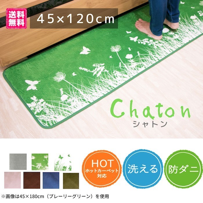 | シャトン キッチンマット 洗える 7カラー 約45× 120cm 滑りにくい加工 防ダニ ホットカーペット対応 |